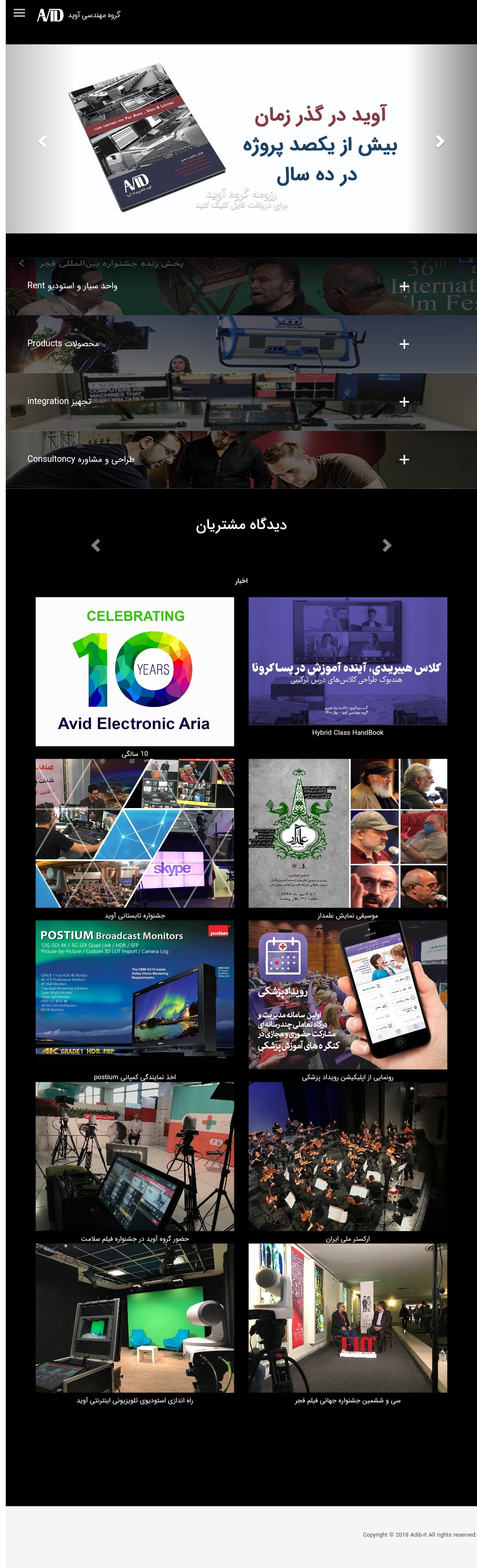 گروه صنعتی آویدآریا ، تجهیزکننده ی سالن های همایش و سمینارها می باشد. این گروه از خدمات میزبانی هاست، ثبت دامنه و طراحی سایت مجموعه ی ادیب بهره مند شده است.گروه صنعتی آویدآریا در زمینه ی واردات کلیه ی تجهیزات صوتی و تصویری ویدیوکنفرانس ها فعالیت دارد.